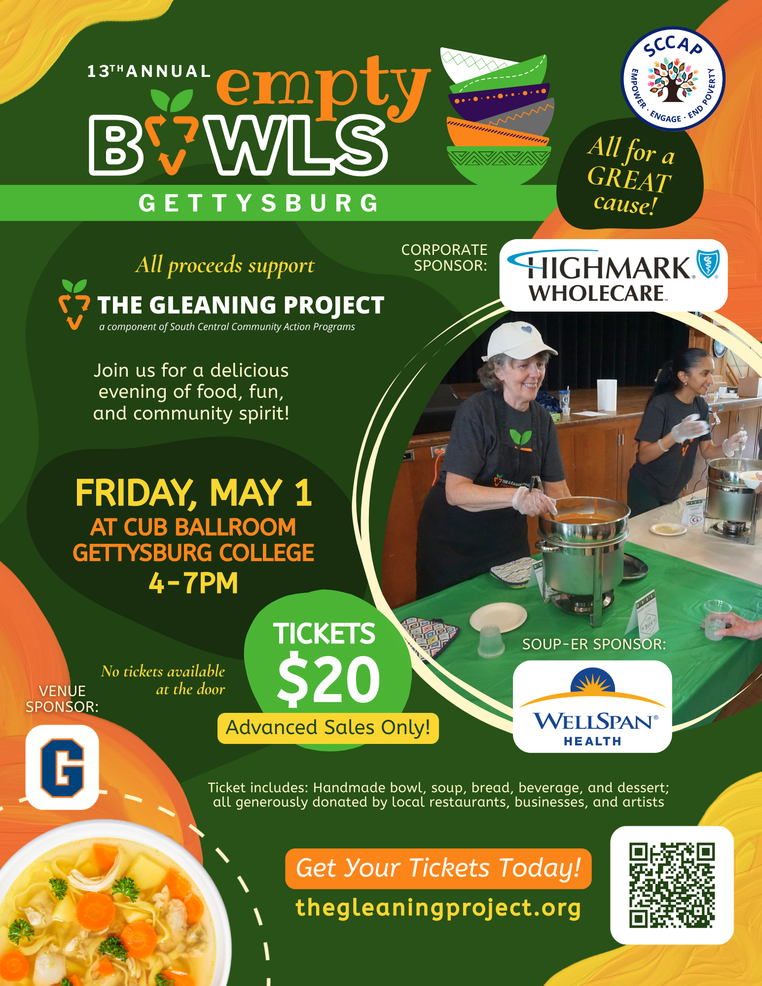 13th Annual Empty Bowls Gettysburg - May 1, 2026 - Purchase tickets below