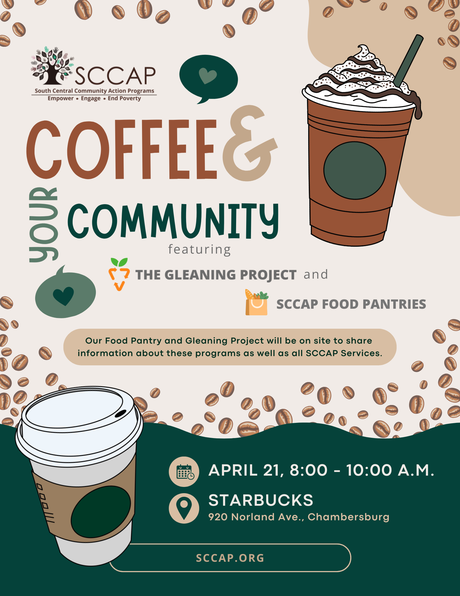 Coffee With Your Community at Starbucks in Chambersburg - Meet our Gleaning & Food Pantry Staff - April 21, 2026 8:00 a.m. - 10:00 a.m.